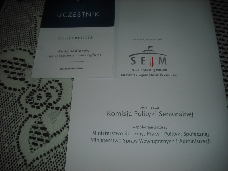 1 października 2016 roku w Sejmie RP odbyła się konferencja „Rady seniorów – partnerstwo z samorządami”, której organizatorem była Komisja Polityki Senioralnej przy udziale Ministerstw: Rodziny, Pracy i Polityki Społecznej oraz Spraw Wewnętrznych i Administracji.
