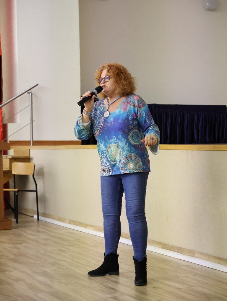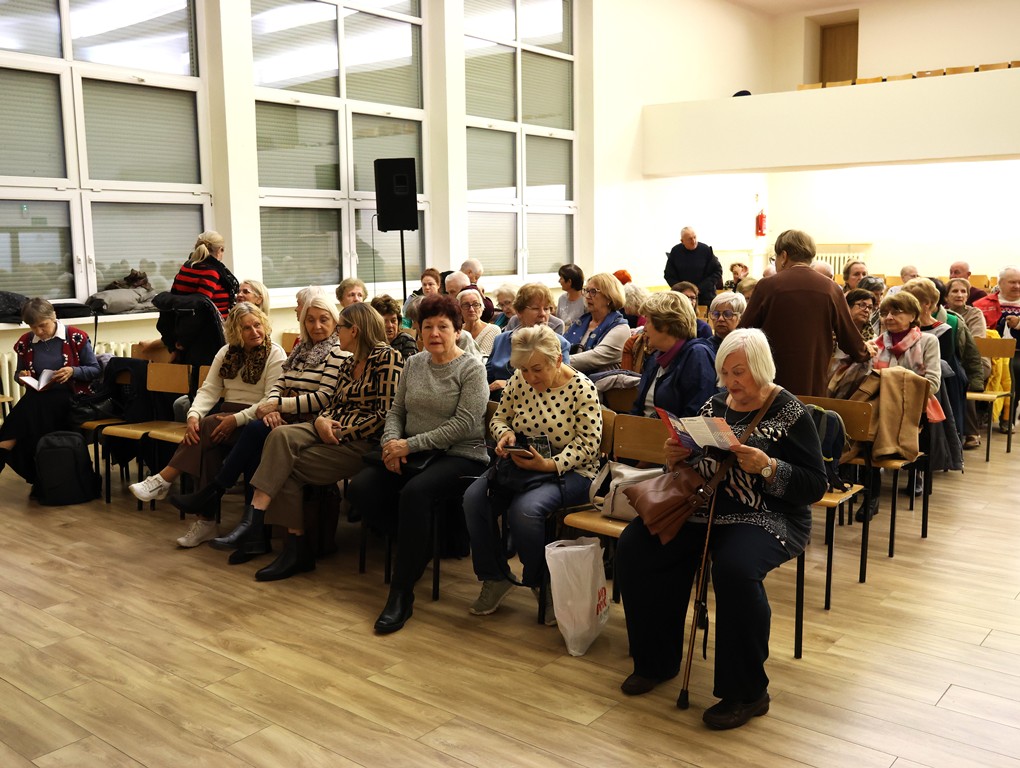 Wykład arcyciekawy, opowiedziany ze swadą i humorem. Na koniec wisienka na torcie- pięknie zaśpiewane przez panią Monikę Kamieńską dwie piosenki z repertuaru Marii Koterbskiej.
